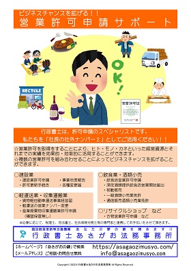 ビジネスチャンスを拡げる!!営業許可申請サポート