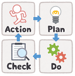 そのスケジュールに沿って、PDCAサイクルの考え方をイメージしてPとC、Aを毎月の会計顧問業務として進めさせていただきます。