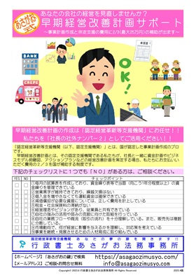 早期経営改善計画の申請・実施支援 ※国から25万円の補助があります |